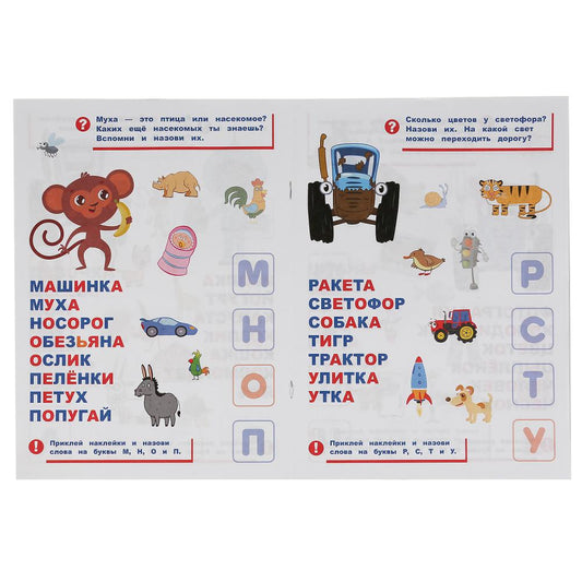 "УМКА". СИНИЙ ТРАКТОР. АЗБУКА В НАКЛЕЙКАХ. 210Х285 ММ.,8 СТР.+ 50 НАКЛЕЕК. БУМАГА ОФСЕТ. в кор.50шт