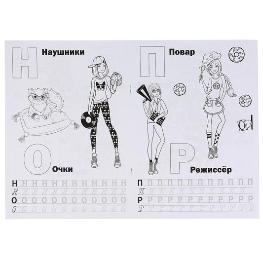 "УМКА". СТИЛЬНЫЕ ПОДРУЖКИ. УЧИМ БУКВЫ. БАРБИ. АЛЬБОМ ДЛЯ ТВОРЧЕСТВА. 214Х290 ММ. 16 СТР. в кор.50шт