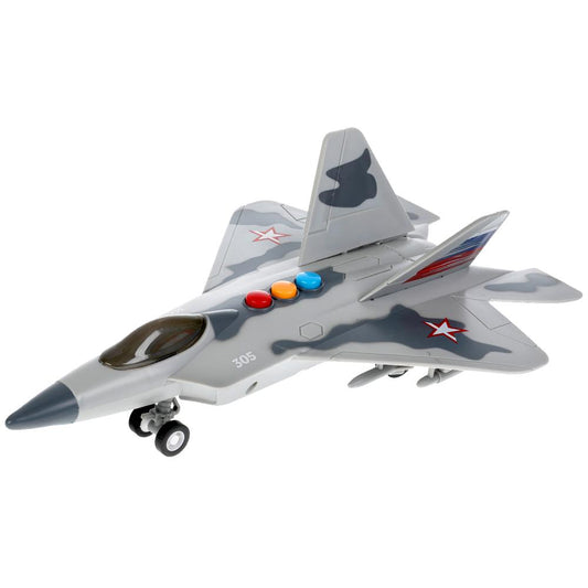 ZY1006390-R Модель пластиковый свет-звук ИСТРЕБИТЕЛЬ 26 см, 3 кнопки, инерция, кор. Технопарк в кор.48шт