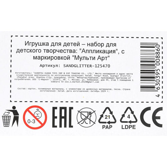 Аппликация песком с блестками 17*23 см мой маленький пони МУЛЬТИ АРТ в кор.100шт