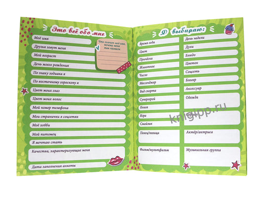 БЛОКНОТИК-АНКЕТА ДЛЯ ТЕБЯ И ДРУЗЕЙ с наклейками. ЗЕЛЁНАЯ