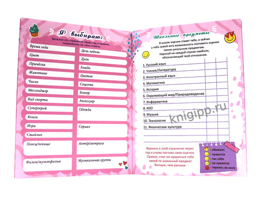 БЛОКНОТИК-АНКЕТА ДЛЯ ТЕБЯ И ДРУЗЕЙ с наклейками. РОЗОВАЯ