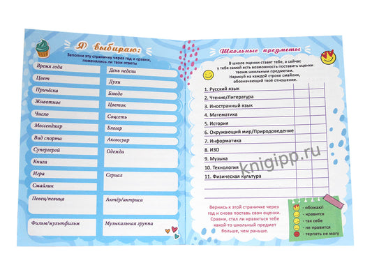 БЛОКНОТИК-АНКЕТА ДЛЯ ТЕБЯ И ДРУЗЕЙ с наклейками. СИНЯЯ