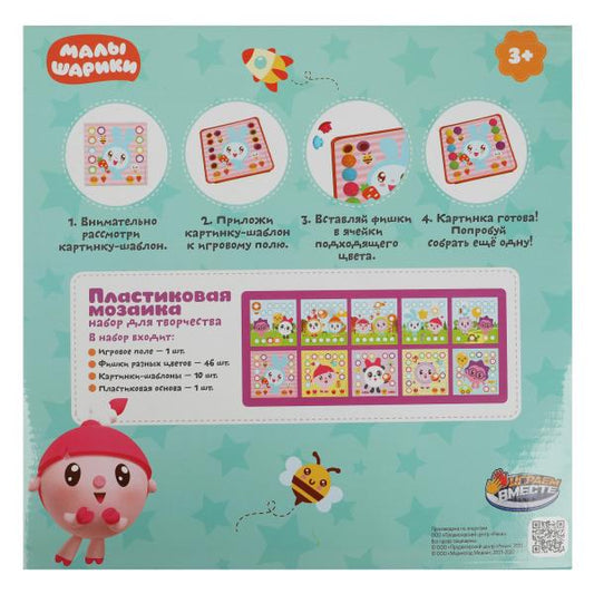 Большая пластиковая мозаика для малышей МАЛЫШАРИКИ 10 картинок, 46 фишек ИГРАЕМ ВМЕСТЕ в кор.2*18шт