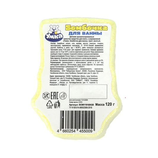 Бомбочка для ванн губка спонж в форме героя цитрусовый бум, 120 г, Умка в кор.30шт