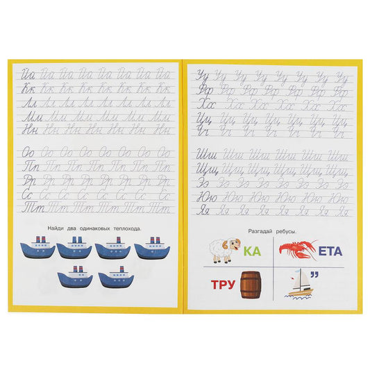 Буквы. Учимся писать. Прописи с заданиями. 165х235 мм. Скрепка. 16 стр. Умка в кор.50шт