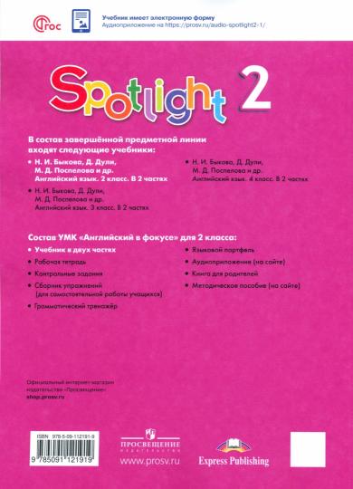 Быкова. Английский язык. 2 класс. Учебник. В 2 ч. Часть 2. / Spotlight /ФГОС 2021
