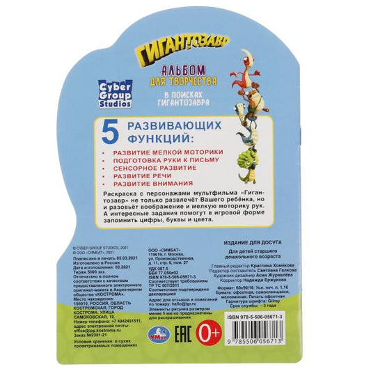 В поисках гигантозавра. Раскраска с вырубкой в виде персонажа и наклейк. Гигантозавры.Умка в кор50шт