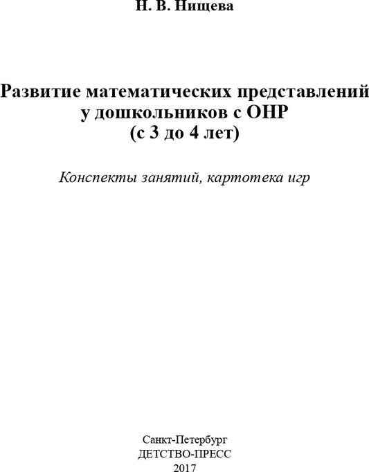 Развитие математических представлений у дошкольников с ОНР (с 3 до 4 лет). ФГОС.