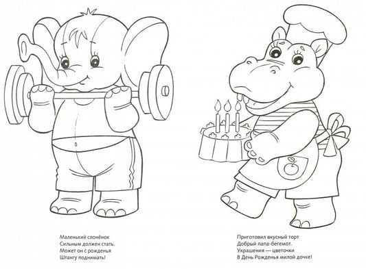 Слоненок с мышкой. Стихи для малышей. Раскраска