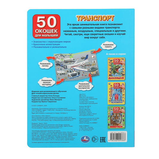 Транспорт. 50 окошек для малышей. 200х260 мм. 10 картонных страниц. Умка в кор.50шт