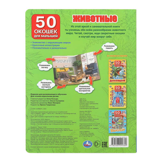 Животные. 50 окошек для малышей. 200х260 мм. 10 картонных страниц. Умка в кор.50шт