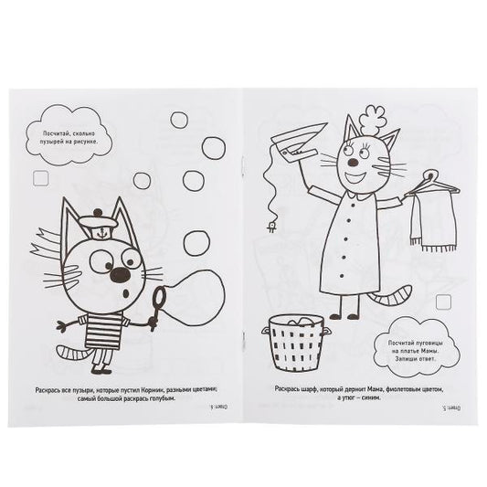 Три кота. 16 интересных заданий. (Первая раскраска А5). 145х210 мм. 16 стр. Умка в кор.50шт