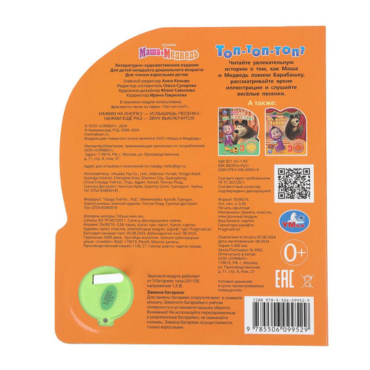 Топ-топ-топ? Маша и Медведь (1 кн. 3 пес.) 152х185мм, 8стр Умка в кор.24шт