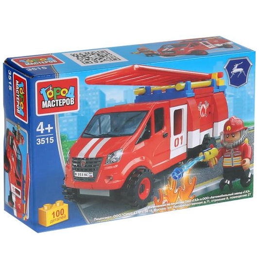 ГАЗ конструктор пожарная газель, с фигуркой, 100дет. в кор. "Город мастеров" в кор.2*40шт