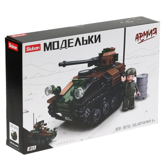 Конструктор пласт. танк с фигуркой, 245дет. на русском. кор. в кор.36шт