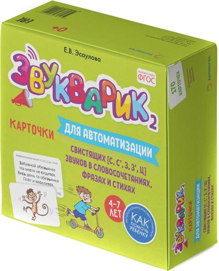 Звукварик 2: 170 карточек для автоматизации и дифференциации свистящих [с, с’, з, з’, ц] звуков в словосочетаниях, фразах и стихах. 4-7 лет