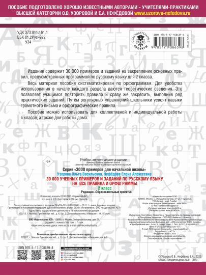 30000 учебных примеров и заданий по русскому языку на все правила и орфограммы. 2 класс