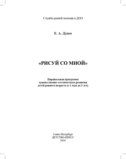 Рисуй со мной парциальная программа художественно-эстетического развития детей раннего возраста (с 1 года до 3 лет). ФГОС