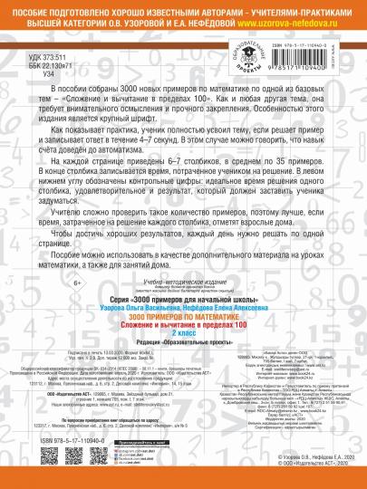 3000 примеров по математике. 2 класс. Сложение и вычитание в пределах 100. Крупный шрифт