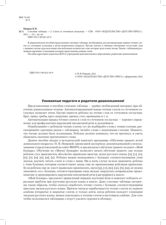 Нищева. Слоговые таблицы - 2. Слоги со стечением согласных. ФОП. ФАОП. (ФГОС)
