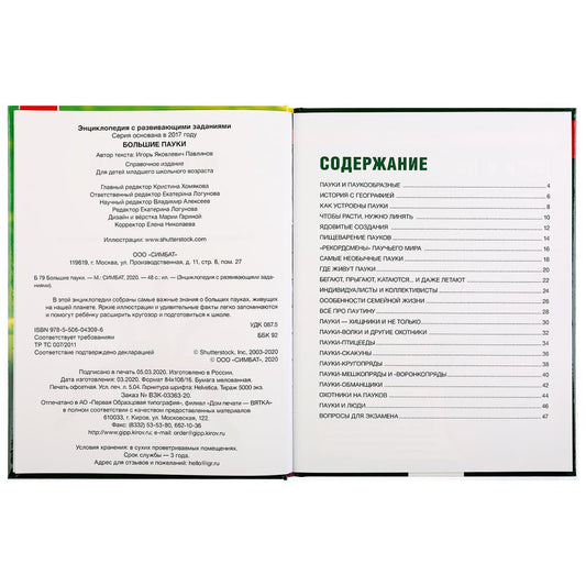 "УМКА". БОЛЬШИЕ ПАУКИ (ЭНЦИКЛОПЕДИЯ А4 С РАЗВИВАЮЩИМИ ЗАДАНИЯМИ). ТВЕРДЫЙ ПЕРЕПЛЕТ в кор.15шт