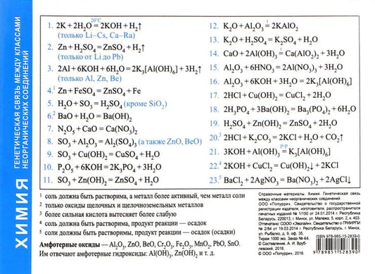 Справочные материалы: Химия. Генетическая связь между классами неорганических соединений