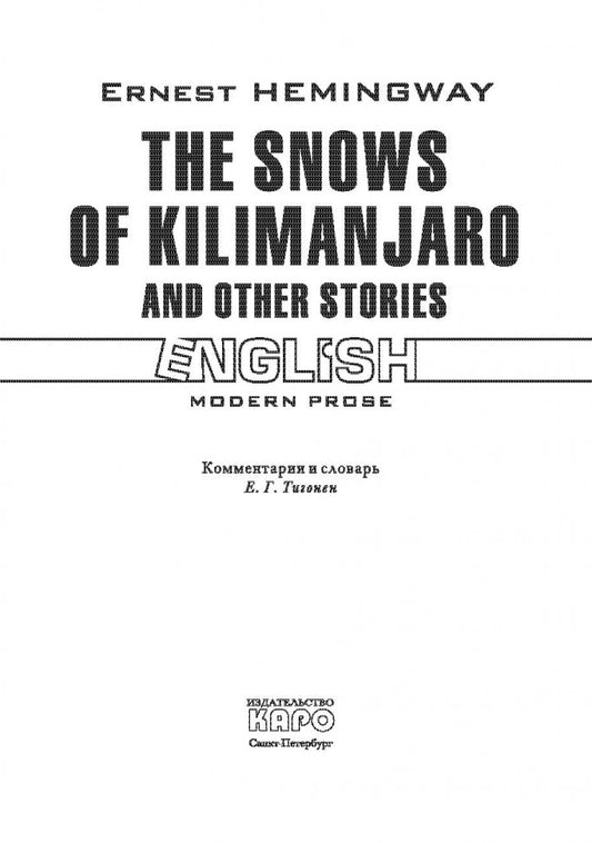 Снега Килиманджаро и другие рассказы. (КДЧ на английском языке). Хемингуэй Э.М.