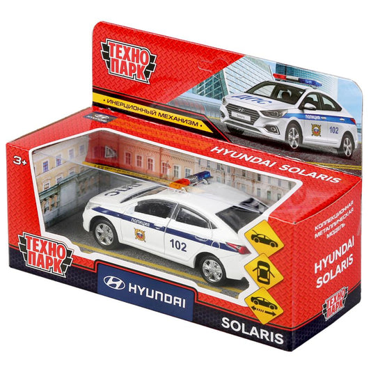 Машина металл "hyundai solaris полиция" 12см, откр.двери, инерц, белый в кор. Технопарк в кор.2*36шт