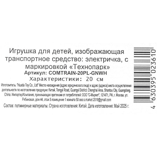 Модель пластик свет-звук ЭЛЕКТРИЧКА 20 см, 3 кнопки,зеленый с белым, кор. Технопарк в кор.48шт
