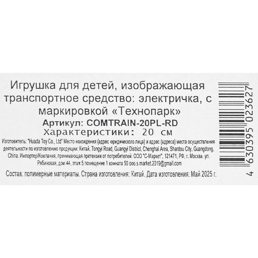 Модель пластик свет-звук ЭЛЕКТРИЧКА 20 см, 3 кнопки, инерц, красный, кор. Технопарк в кор.48шт