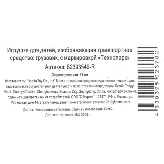 Машина пластик ГРУЗОВИК 17 см, инерция, дверь, ВОЕННЫЙ Технопарк в кор.2*72шт