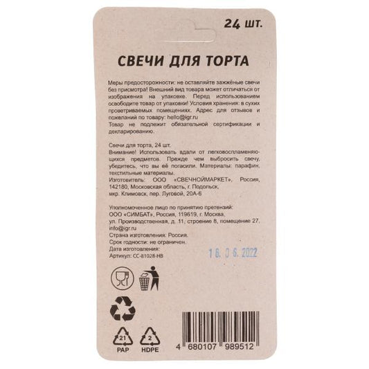 Свечи для торта 24 шт, блистер, с днем рождения ЧУДО ПРАЗДНИК в кор.48наб