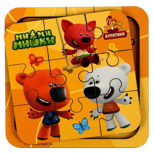 Игрушка деревянная пазл 10*10 см. Ми-ми-мишки терм. пакет Буратино в кор.189шт