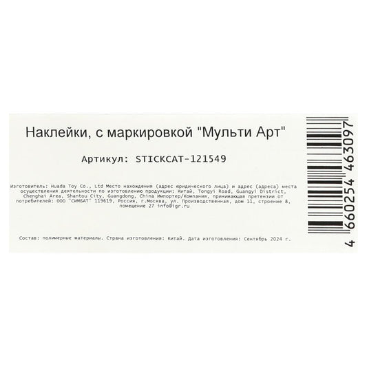 Наклейки бумажные, а5, коты МУЛЬТИ АРТ в кор.500шт