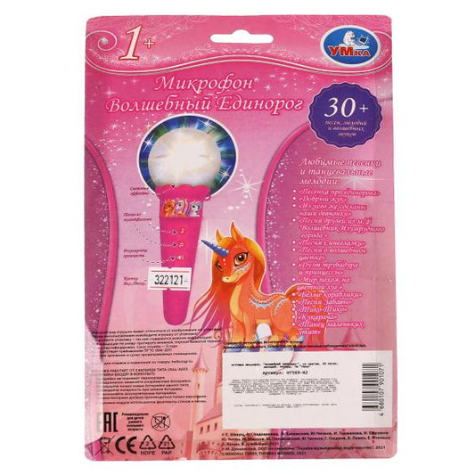 Музыкальный микрофон волшебный единорог.30 песен,звуков.свет.блист.бат. Умка в кор.120шт