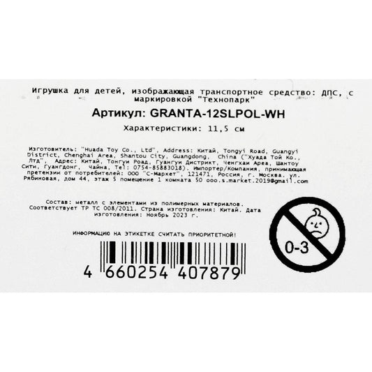 Машина металл свет-звук LADA granta ПОЛИЦИЯ 11,5 см, дв, багаж, инерц, кор. Технопарк в кор.2*36шт