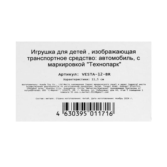 Машина металл LADA vesta 11,5 см, двери, коричневый, кор. Технопарк в кор.2*36шт