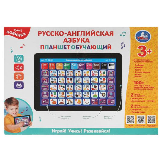 Планшет обучающая русско-английская азбука.400 слов,звуков,слогов.кор.бат. Умка в кор.36шт