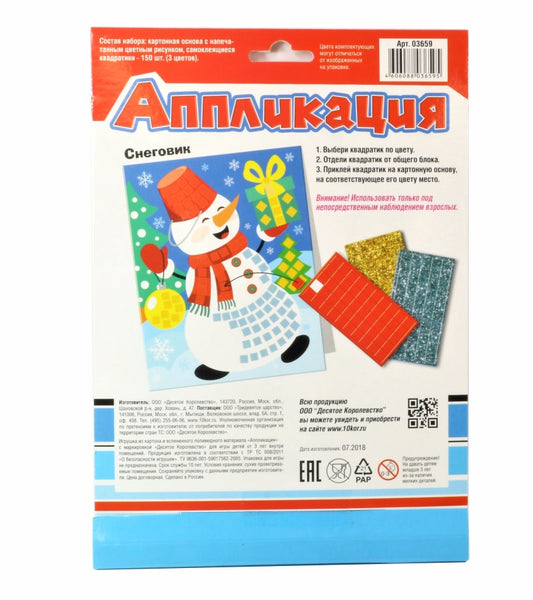 Новый год. Набор для творчества. Аппликация "Снеговик"