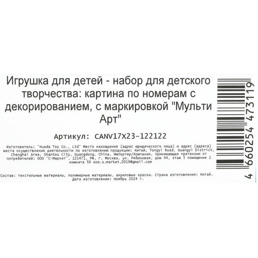 Раскраска по номерам 17х23 см котик и бабочка МУЛЬТИ АРТ в кор.50шт