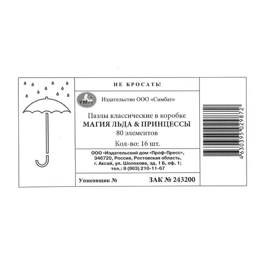 Магия льда и Принцессы. Пазлы в коробке 80 деталей. 130х90х25 мм. Умные игры в уп.16шт в кор.8уп