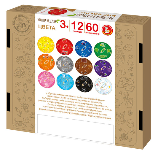 Пазлы из дерева. Мои первые пазлы "Цвета" 60 эл.