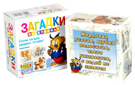 КУБИКИ ЗАГАДКИ "ЖИВОТНЫЕ" (БЕЗ ОБКЛЕЙКИ) 4ШТ в кор.60шт