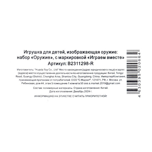 Автомат с присосками, блистер 17*54*4см ИГРАЕМ ВМЕСТЕ в кор.2*54шт