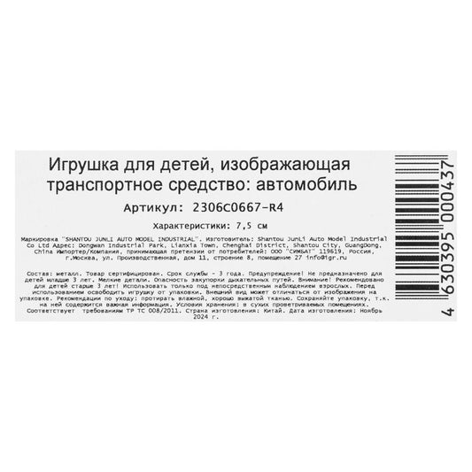 Машина металл BMW X6, размер 7,5 см, инерция, блистер - в кор.2*288шт