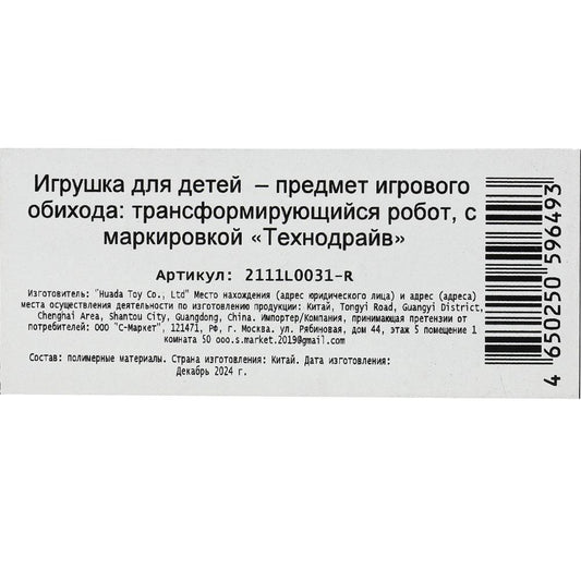 Робот трансформирующийся, блист.15*25*5см ТЕХНОДРАЙВ в кор.2*108шт