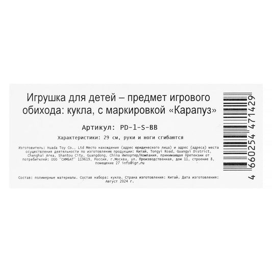 Кукла 29см София, сказочная принцесса, руки и ноги сгиб., кор. КАРАПУЗ в кор.24шт