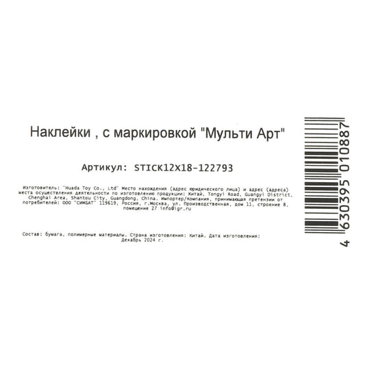Наклейки бумажные 12х18 см, аксолотль МУЛЬТИ АРТ в кор.500шт
