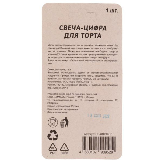 Свеча для торта, цифра "0" золото, блистер,с днем рождения ЧУДО ПРАЗДНИК в кор.48шт